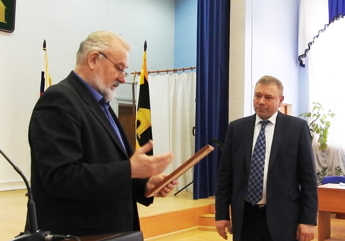 Председатель движения «Народный Собор» Олег Юрьевич Кассин (Москва) начал своё выступление с приятного момента - он вручил К.Г. Ильину медаль «Народного Собора» «Вместе за одно». А пояснил он это так: «В Калязине за последние годы сложился устойчивый эпицентр патриотизма, духовности и отстаивания позиций Русского Мира. Опыт этого небольшого города на Волге уже перенимают и в других регионах».
