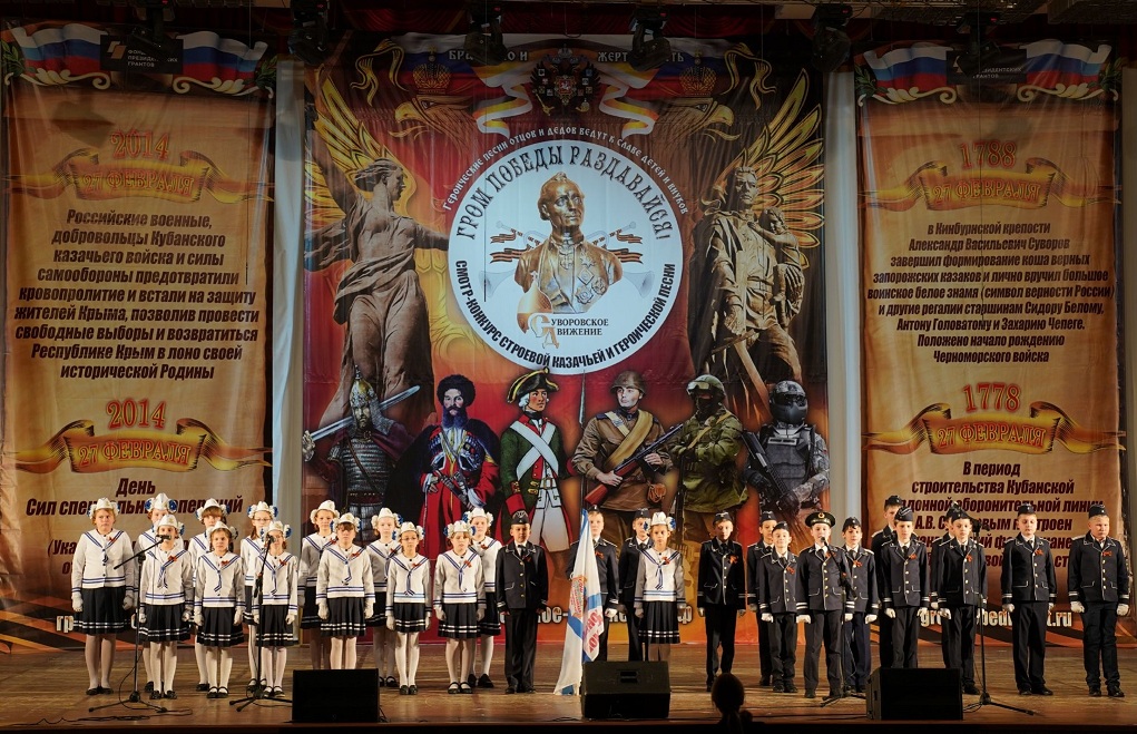 26 февраля 2020, накануне Дня Сил специальных операций РФ, в Краснодаре в большом зале ЦКЗ на Красной состоялся V Краевой смотр-конкурс строевой казачьей и героической песни «Гром победы, раздавайся!». Смотр-конкурс проводился в рамках реализации проекта «Песни отцов и дедов ведут к славе детей и внуков» при поддержке Фонда Президентских грантов. Организаторами конкурса выступили КРОД «Суворовское движение», ОНФ Краснодарского края и ГБНТУК КК «Кубанский казачий хор».