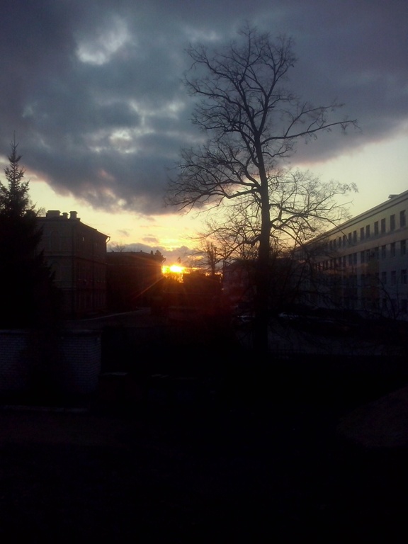 Пока прихожанам можно чуть передохнуть – выбежал во двор церкви глянуть погоду. Заметно похолодало, солнце садится в чистых горизонтах, на небе первые звёзды. Ночью хорошо подморозит...