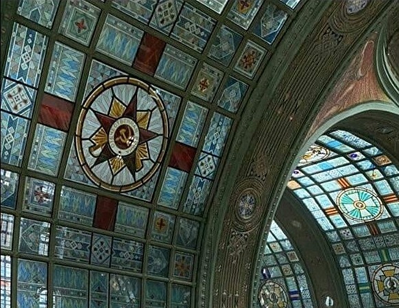 На этот раз предметом либеральных спекуляций стали портреты Сталина, Путина и Шойгу, а изображение на храмовом витраже Ордена Отечественной войны вообще привело просто в состояние беснования, а особо оголтелые увидели в этом масонскую символику.