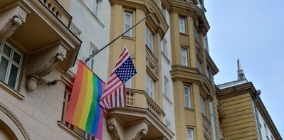 25 июня в окнах посольства США в Москве рядом с государственным звездно-полосатым флагом был вывешен «радужный флаг» ЛГБТ-сообщества. При этом «радужный флаг» на какое-то время исчез со здания дипмиссии, однако затем появился вновь, сообщает РЕН ТВ.
