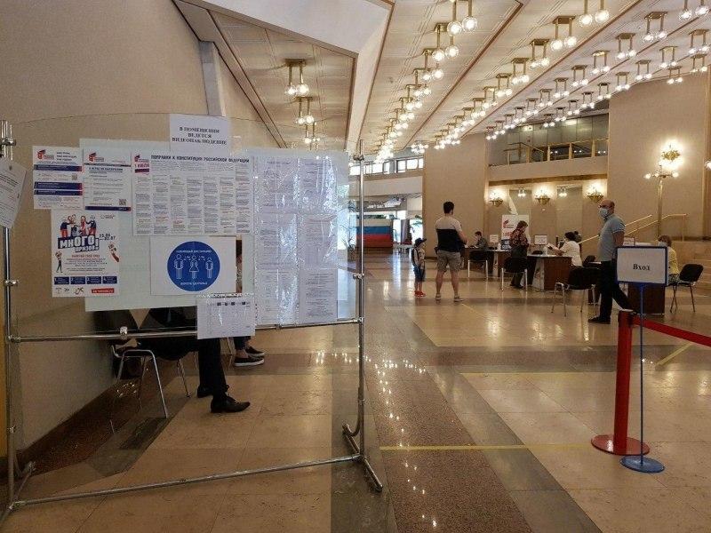 На УИК № 2151 первые участники голосования появились уже в восемь утра. На участке соблюдаются все санитарные нормы: избирателям выдаются маски, перчатки и одноразовая ручка. Каждого гражданина просят продезинфицировать руки. Помещение полностью прокварцевали.