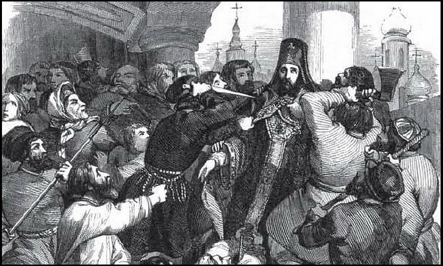 Разглядев злой умысел в действиях архиепископа – «везде слышны были проклятия и угрозы на архиепископа, везде обвиняли его в корыстолюбии и пренебрежении к церковным обрядам», – рассвирепевшая чернь разгромила сначала Чудов монастырь и избила там до полусмерти архимандрита Никона, брата архиепископа. От побоев и страха он сошёл с ума и умер через 13 дней. На следующее утро, 16 сентября, узнав, что архиепископ скрывался в Донском монастыре, толпа взяла обитель штурмом и забила владыку до смерти.