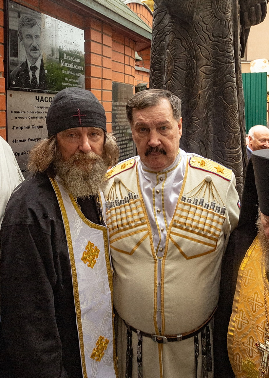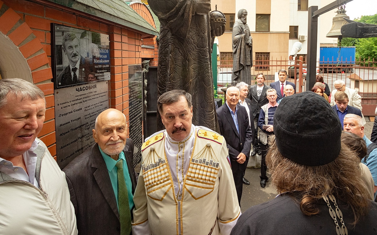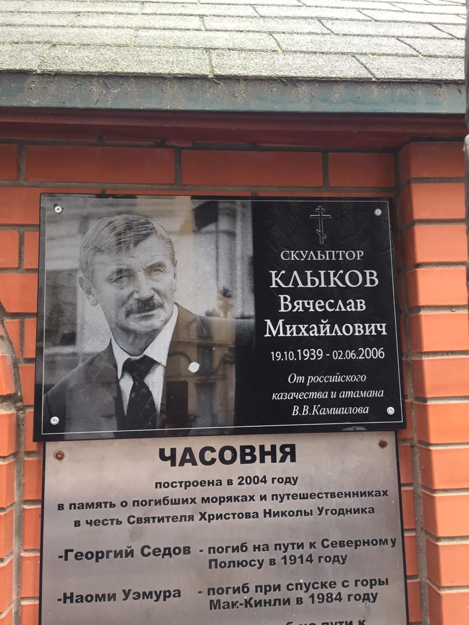Памятную доску изготовил друг и соратник В.М. Клыкова председатель Совета атаманов России Валерий Васильевич Камшилов. Он и был организатором памятного мероприятия.