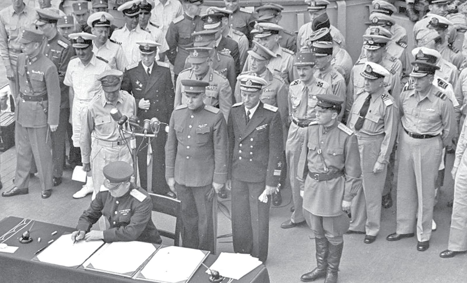 Генерал-лейтенант Кузьма Деревянко принимает японскую капитуляцию на борту линкора Миссури