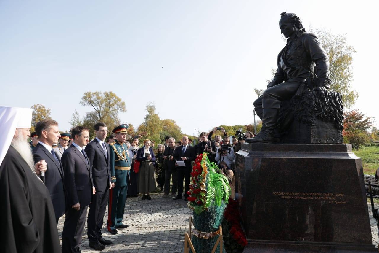Памятник, возведённый в родовом имении полководца, должен стать новой страницей культурной жизни региона, подчеркнул Игорь Щёголев. «Суворов – продолжатель дела Александра Невского, которого полководец XVIII века считал своим небесным покровителем и жизненным примером которого вдохновлялся», – сказал полпред Президента.