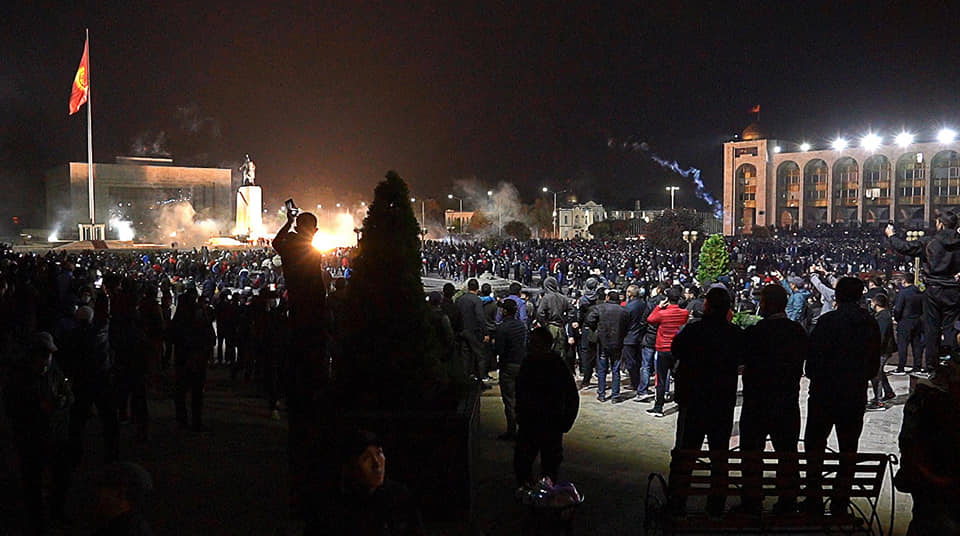 Ранее протестующие ворвались в здание Белого дома, где располагаются парламент и администрация президента Киргизии. После двухчасового противостояния с сотрудниками милиции им удалось прорваться на огороженную территорию возле здания. Затем часть участников акции протеста направилась к зданию СИЗО Государственного комитета национальной безопасности (ГКНБ) и освободила из изолятора бывшего президента республики Алмазбека Атамбаева, арестованного в августе 2019 года.