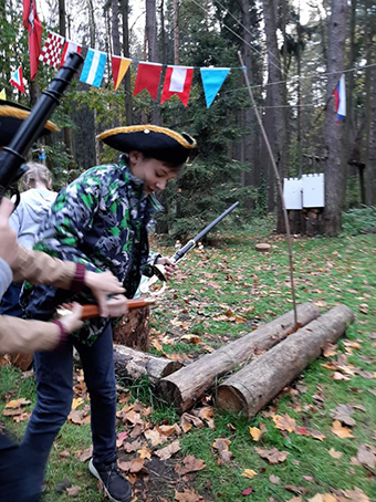 Погода на радость участников выдалась солнечная. Не надо было прятаться от дождя и сокращать программу. А она, по обыкновению, чересчур забористая. Участвовали в строительстве настоящего корабля, тянули канат; мальчишки сражались с неприятелем «у мыса Тендра»; демонстрировали свои знания в викторине «Корабли штурмуют бастионы»; читали стихи Сергея Есенина и пели песни под балалайку, водили хороводы, играли в «Заиньку», разгадывали сигнальные огни, рисовали картины на морскую тематику, строили модели кораблей из подручного материала… Листья шуршали, падали вокруг, как морской прибой бились о борт корабля, а шпаги ломались в бою и треуголки катились по траве..