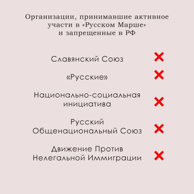 Вскоре решениями судов одна за другой закрываются наиболее активные партии, принимавшие участие в организации «Русских маршей», а их лидеры отправляются за решетку по уголовным статьям.