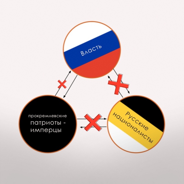 Как стало понятно, власть не интересовала в перспективе русская национальная идеология, в том числе и имперский национализм, хотя он, несомненно, больше ей импонировал. Мощное движение русского национализма, похоже, и вовсе стало для нее открытием. По крайней мере, власть изначально не восприняла его всерьез и постаралась старым-добрым методом просто запретить. Но все оказалось не так просто.