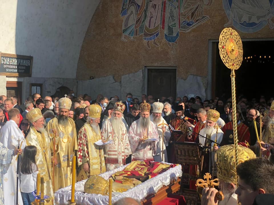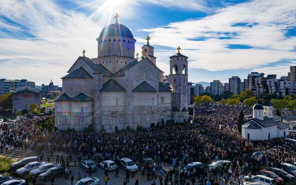 «Хотя колонна с гробом митрополита покинула Цетинье в 13:00, в церковь Подгорицы она прибыла около 14:30, потому что люди стояли на коленях в ожидании своего пастыря и духовного отца. <...> Гроб с земными останками митрополита пронесли через тысячи людей и внесли в храм Воскресения Христова, где верующие смогут поклониться своему пастырю», – говорится в сообщении.
