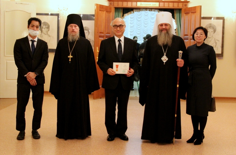 Затем состоялась светская часть торжества – вручение юбилейных медалей Русской Православной Церкви «50 лет автономии Японской Православной Церкви 1970–2020». Перед самой церемонией награждения хор Хабаровской епархии исполнил тропарь равноапостольному Николаю Японскому на японском языке, что вызвало нескрываемое восхищения у японских гостей.
