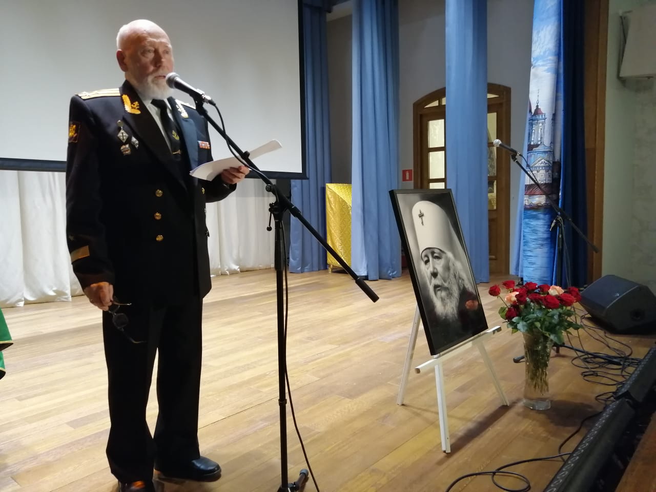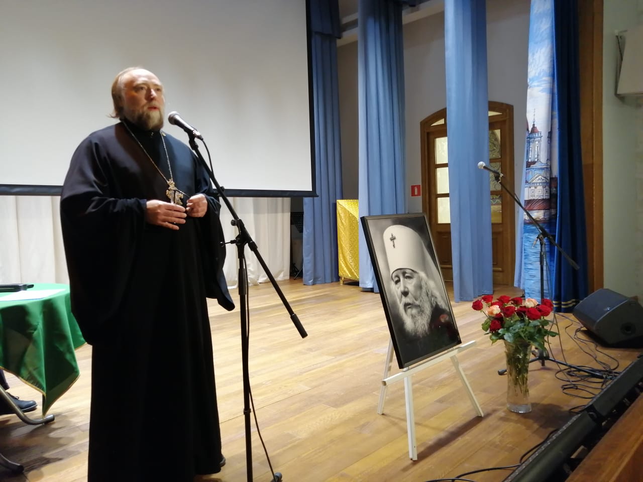 Директор Центра этнорелигиозных исследований, председатель отдела по взаимоотношениям Церкви и общества Санкт-Петербургской митрополии протоиерей Александр Пелин огласил приветственное слово митрополита Санкт-Петербургского и Ладожского Варсонофия организаторам и участникам вечера памяти.