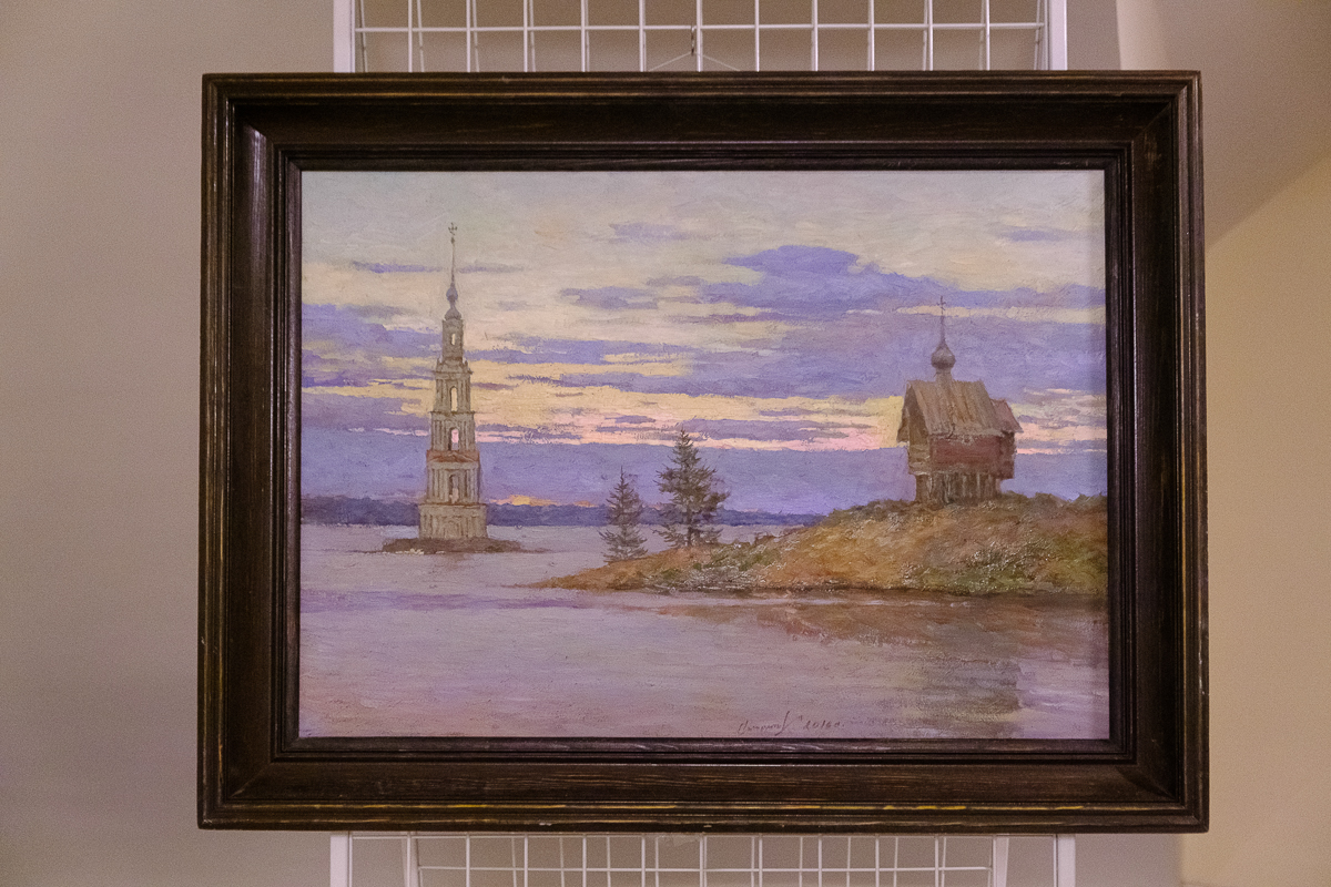 Константин Геннадьевич в приветственном слове отметил, что для Калязина большая честь представлять в Санкт-Петербурге виды Калязина. Основной сюжет картин - колокольня взорванного и затопленного храма святого Николая чудотворца. «Калязинцы добивались, чтобы колокольню включили в проект по реставрации, опасаясь, что этот символ непотопляемости России рухнет. Если Атлантида утонула, то Россия будет жить, главное - хранить веру православную. В интернете было собрано 85 тысяч подписей за её реставрацию, проект согласовали, государство выделило деньги на проект, и в 2021 году мы ожидаем её реставрацию», - сказал он.