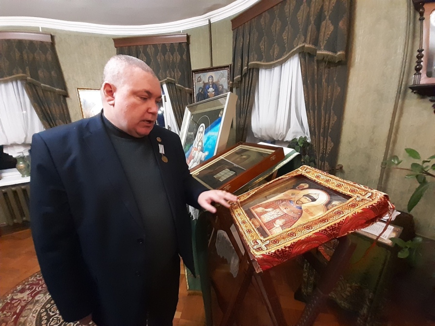 Я пригласил Игоря Евгеньевича с иконой в Музей-Квартиру вместе встретить Русский новый год в гостях у Батюшки. Несмотря на плотный график, он отложил другие дела и нашёл время принести икону в Кронштадт.