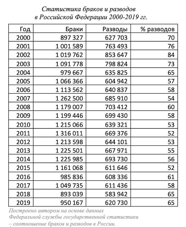 Начать хотелось бы со статистики браков и разводов в России, поскольку суть проблемы кроется именно в этих цифрах: