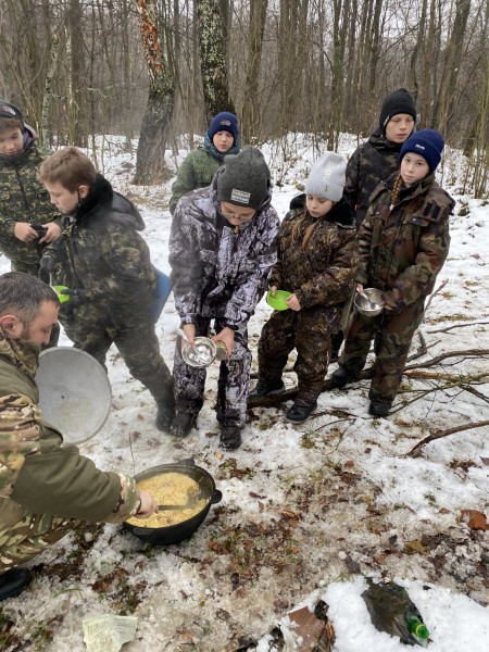 Всю ночь в лесу, «стреляя» сырыми дровами разбрасывая искры, горели костры, напоминая то ли биваки русской армии, то ли партизанские стоянки. Возле них посменно дежурили взрослые. К услугам проголодавшихся, вернувшихся из боя воинов, всегда был горячий чай, гречка с тушёнкой и «дымком» - все просто, без кулинарных изысков. Но на аппетит никто не жаловался. Да и вообще ни жалоб, ни капризов, типичных для такой собранной в одном месте оравы детей не было слышно – экстремальная обстановка не располагала к нытью. А для тех, кого-таки сморил сон, были приготовлены палатки, зимние спальники и прогретые автомобили.