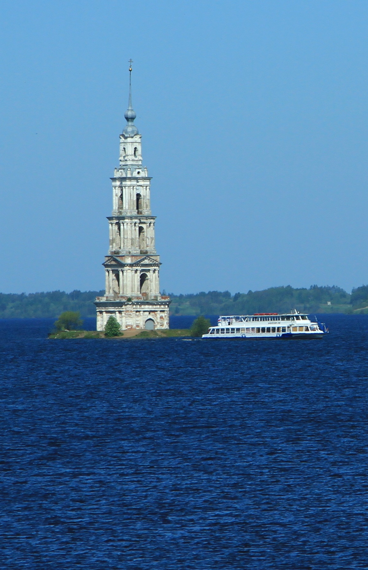 «Я начал путешествие по Волге с города Калязина. И когда взглянул на гладь реки и увидел колокольню затопленного храма, колокольню, которая гордо стоит над водной поверхностью, несмотря на то, что по всем законам она должна была давно рухнуть, то почему-то подумал вот о чем. Эта колокольня, стоящая посреди воды, есть некий символ непотопляемости Русской Православной Церкви». У жителей маленького волжского городка Калязин навсегда в сердце останутся эти слова, которые произнес Патриарх Московский и всея Руси Кирилл после короткой остановки в Калязине, посещая Спасо-Преображенский собор города Углича 9 сентября 2010 года по пути в Ярославль.