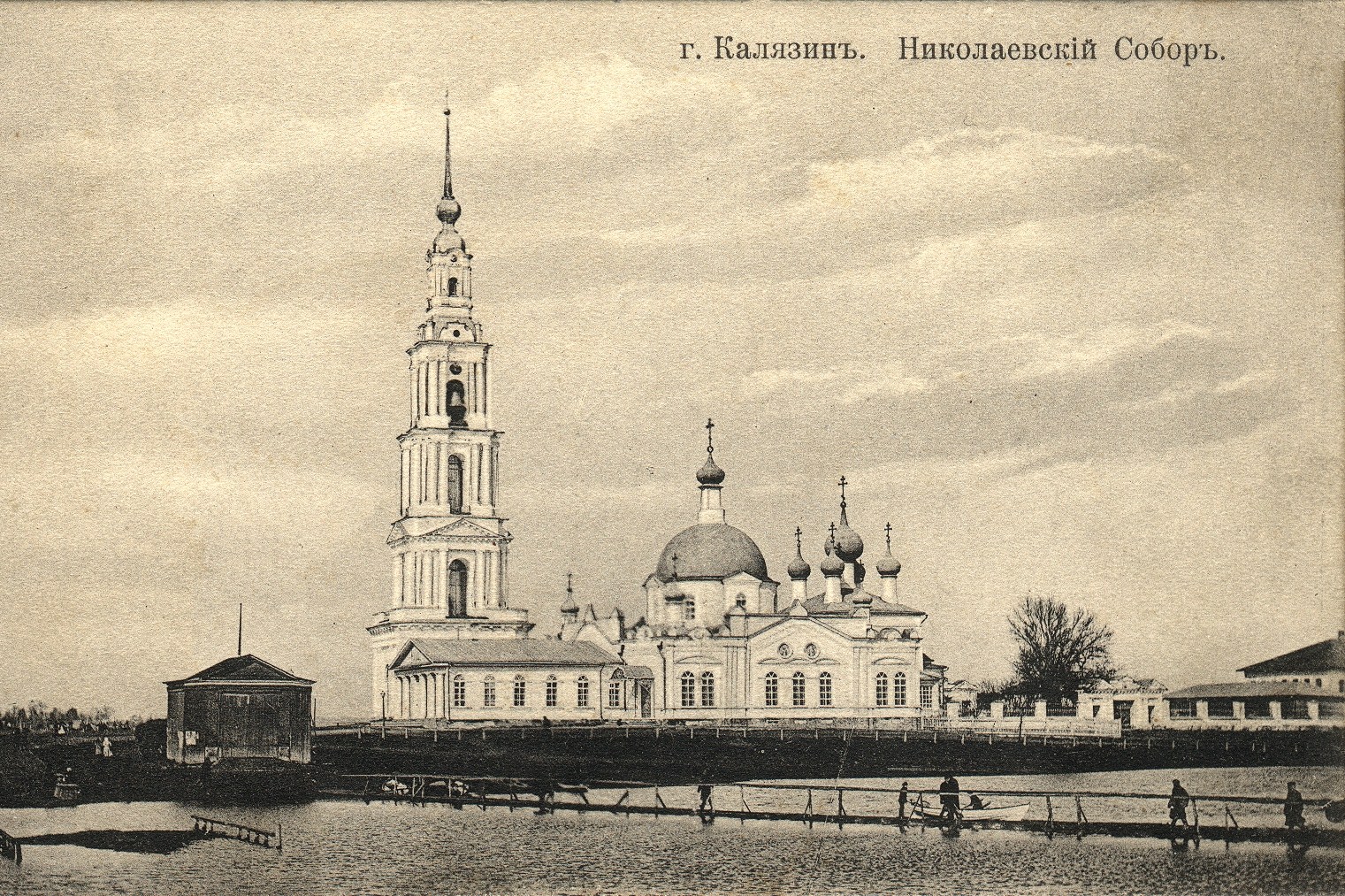 Колокольня Николаевского собора в Калязине была построена в 1800-1801 годах, имела пять ярусов, купол с главой, шпилем и крестом. К 1940-м годам утвердили проект Волгостроя, согласно которому предусматривалось искусственное расширение Волги, создание на её акватории гидроэлектростанций. При строительстве Угличского водохранилища старая часть Калязина оказалась в зоне затопления; собор был разобран, а колокольню оставили в качестве маяка. До наших дней колокольня сохранилась без перестроек и значительных утрат. Она является градостроительной доминантой, центральным звеном в панораме города Калязина со стороны Волги и одним из лучших на территории Тверской области образцов колокольни рубежа XVIII-XIX веков.