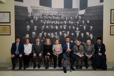 От имени президента Международного фонда им. В.П. Филатова академика РАЕН, к.э.н. Дибровой Екатерины Александровны настоятелю Подворья Соловецкого монастыря архимандриту Мефодию (Морозову) было передано Благодарственное письмо за открытое, доброе и братское сотрудничество. В библиотеку Подворья от имени Фонда были переданы редкие книги по святоотеческому наследию.
