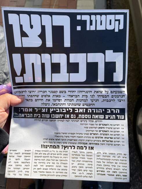 Листовки распространяются в Израиле повсеместно, содержат они разные тексты. В одних вакцинация сравнивается с Холокостом. На других цитируются слова некоего д-ра Кастнера – венгерского еврея, который вёл переговоры с нацистами о выкупе евреев. В листовках говорится, что призыв Кастнера: «Евреи, бегите к поездам! Немцы пообещали нам отдых в санатории», – вселил во многих евреев надежду о спасении. «Сотни тысяч человек поверили призыву и поспешили к поездам, которые привезли их в лагеря смерти, где они были убиты в газовых камерах. Те же, кто решил переждать и спрятаться, выжили».