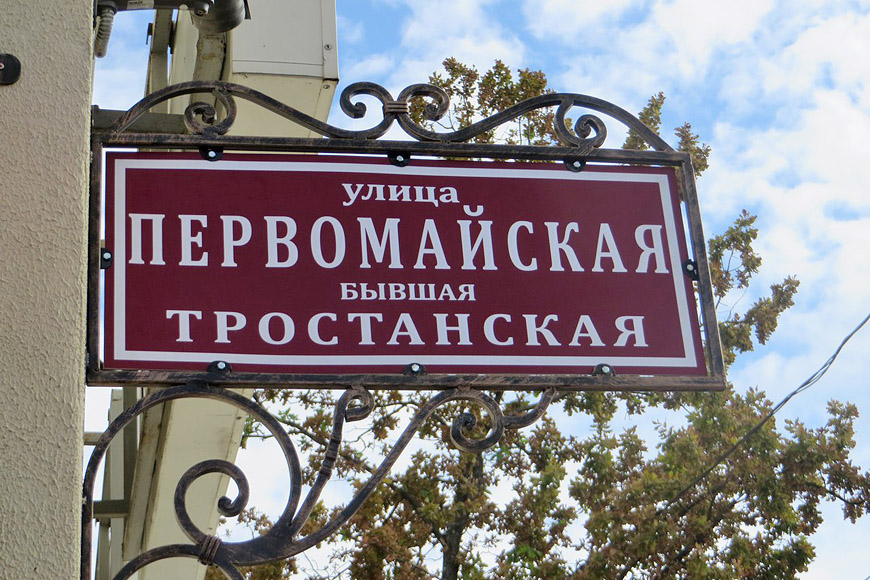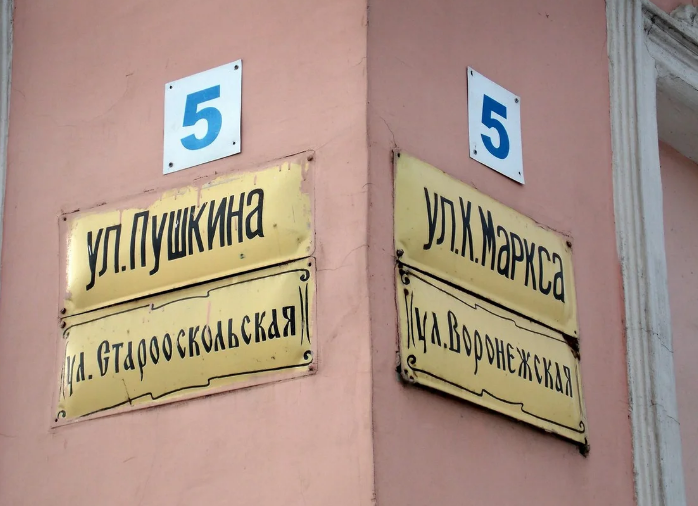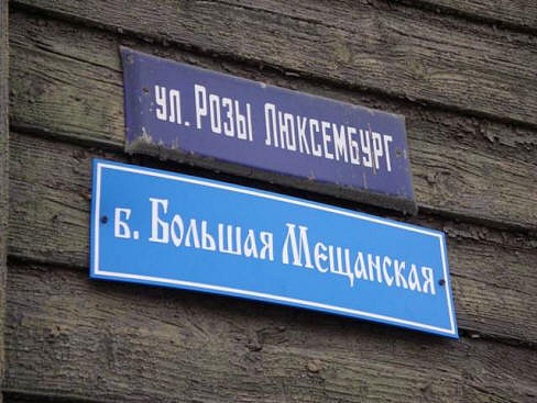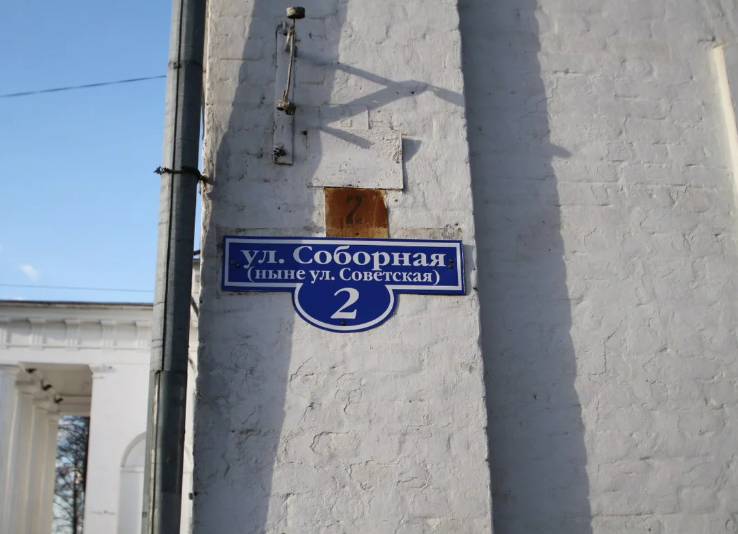 «Двойные» указатели улиц в исторических городах (Новозыбков, Воронеж, Кострома, Краснодар, Тюмень, Челябинск, Омск, Ростов Великий, Руза, Кинешма, Елец, Санкт-Петербург и др.)
