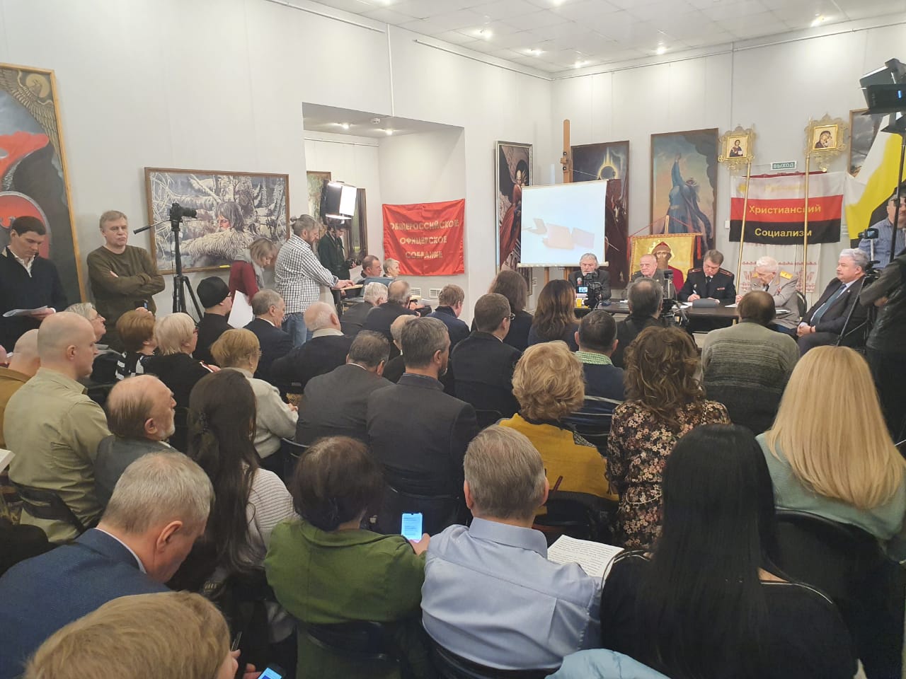 Первоначально предполагалось, что конференция пройдёт в зале Синодального военного отдела на Серпуховской, и в ней по скайпу предполагалось участие некоторых известных ученых и публицистов, в частности, Валентина Катасонова, Эдуарда Ходоса и других. Однако накануне вечером организаторы получили отказ в проведении конференции. Говорят, смутила тема...