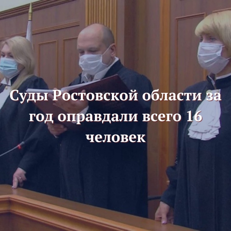За 2020 год в Ростовской области 16 оправдательных приговоров и почти 13400 осужденных. 0,1% справедливости?!