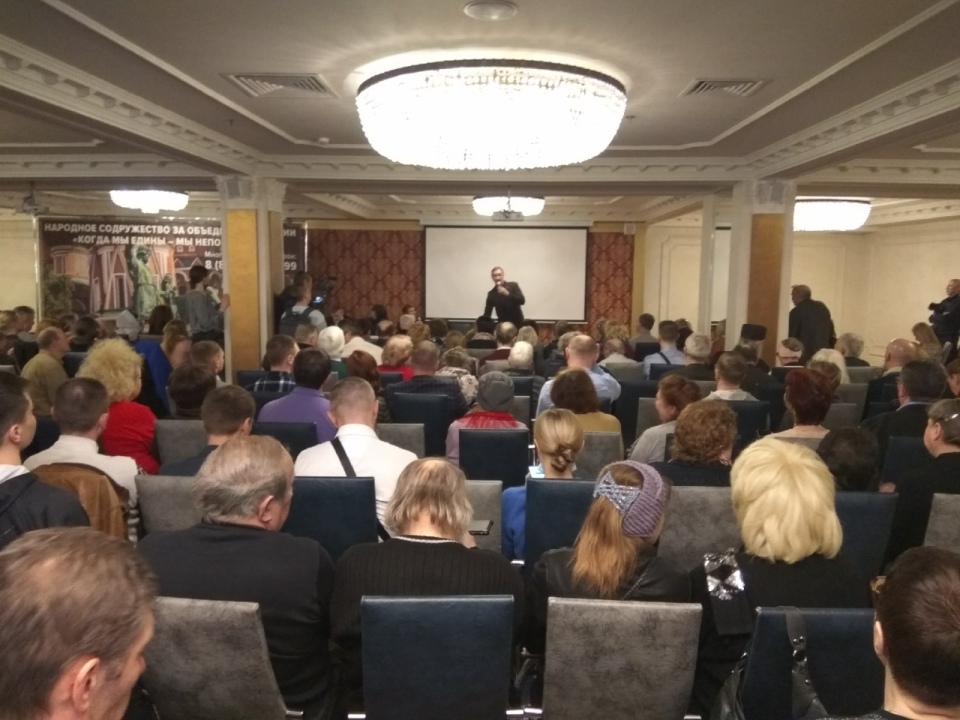 Вчера в Санкт-Петербурге в гостинице «Москва» в зале «Кремлёвский» состоялась пресс-конференция новой общественной организации «Народное содружество за объединение России». Организатором мероприятия стал бывший боксёр, а ныне общественный деятель из Екатеринбурга Руслан (в крещении Сергий, так он и предпочитает себя называть) Алиев.
