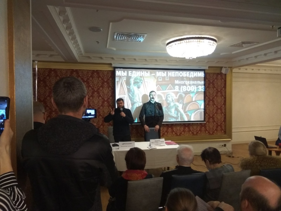 Однако это оказались только пожелания. Доктор медицинских наук Игорь Гундаров в последний момент, как сообщил Алиев, отказался участвовать в конференции. Не было также виртуоза-гармониста, автора-исполнителя Игоря Растеряева и схимонаха Иоанна. А Борис Галкин и Валентин Катасонов выступили перед собравшимися по аудио- и видеосвязи. Впрочем, довольно просторный зал «Кремлёвский» оказался наполнен людьми до отказа. 200 посадочных мест заполнились ещё до начала пресс-конференции. Пришедшим позднее пришлось стоять в проходах и вдоль стен. По-видимому, народ во время коронавирусных ограничений истосковался по живому общению. Однако люди в зале в массе своей были не знакомы корреспонденту РНЛ, т.е. явно представляли не какие-то общественные организации, люди без патриотической биографии.