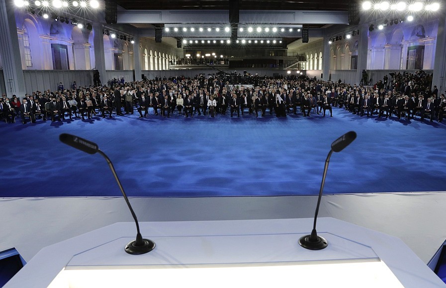 Сегодня в Москве в Центральном выставочном зале «Манеж» прошла церемония оглашения Послания Президентом России Владимиром Путиным Федеральному Собранию, сообщает пресс-служба Кремля.