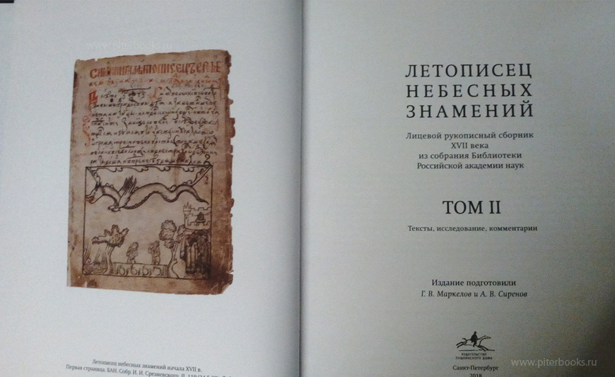 История создания монографии «Летописец небесных знамений» в целом такова: в начале 2000-х годов внимание старшего научного сотрудника Пушкинского Дома (ИРЛИ РАН) Глеба Маркелова привлекла хранящаяся с середины XIX столетия в Отделе рукописей Библиотеки Академии наук известная в единственном списке лицевая (то есть иллюстрированная) рукопись энциклопедического содержания начала XVII века – «Летописец знамений». В ней собраны фрагменты из русских летописей, в которых описываются солнечные и лунные затмения, полярные сияния, падения метеоритов, огненные столпы и другие астрономические явления. В рукописи также упоминаются природные катастрофы, эпидемии, уделяется внимание повестям и сказаниям; текст сопровождён зарисовками автора-летописца (сайт СПбИИ РАН).