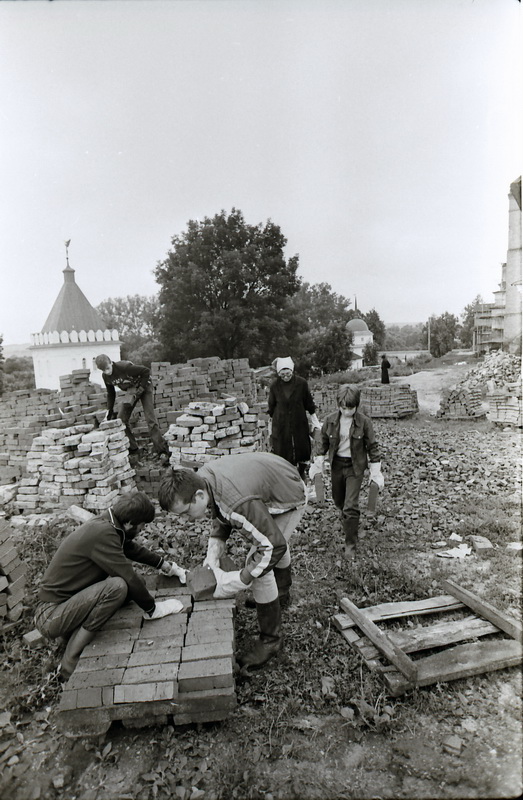 Что это было за время!? Строительному сезону, начатому 23 мая 1988 года, казалось, не было конца. Груды кирпичей, строительные леса, непроходимые бурьяны, размокшие от весенних дождей и разбитые постоянным движением тяжёлой техники дороги. Непрекращающийся ни днём, ни ночью гул моторов, визг пил и вездесущий запах соляры. Кирзачи и ватник - были самой востребованной на ту пору одеждой. Службы шли в башенке святых врат монастыря, той самой, что с ангелом на шпиле, восстановленной в кратчайшие сроки буквально из небытия именно для того, чтобы служить Литургии. Там же проходили и первые иноческие постриги, рукоположения в священнические степени, там братия обретала первую духовную силу, препобеждая страх ужасающего объёма предстоящих работ, ведь фактически все монастырские постройки находились в руинах. Хибарки старцев - в аварийном состоянии. Священный оптинский бор погибал: дорога, изъезженная тракторами, старые дубы и сосны, не выдерживая нагрузки, заболевали и падали. В монастыре на ту пору было всего двадцать монахов: они поступили из духовных школ, из Данилова монастыря и из Троице-Сергиевой Лавры. Но что это были за монахи! Тогдашний наместник монастыря, архимандрит Евлогий (Смирнов), лучше чем кто-либо понимал, какой груз ложится на плечи этих «двадцати», с особой отцовской любовью он называл их не иначе, как «предтечи» и «мироносцы».