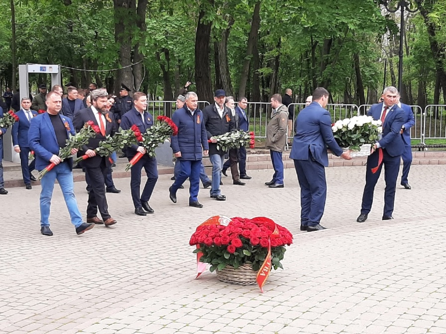 В церемонии возложения приняли участие: Бородай А.Ю., Турчак А.А., Бибилов А.И., Карелин А.А., Малофеев К.В., Саблин Д.В., Пинчук А.Ю.