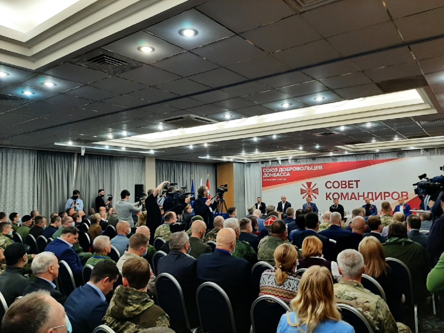 В заседании расширенного Совета Командиров СДД принимают участие добровольцы, командиры подразделений, принимавшие и принимающие участие в защите мирного населения Донбасса, почетные гости.