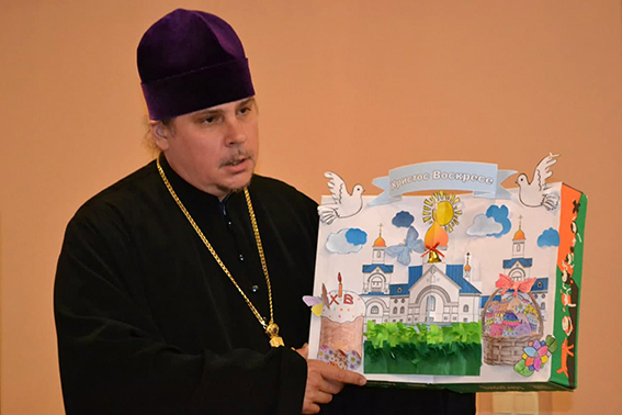 Дети познакомили гостей с традициями казачьей пасхальной кухни, угостили домашними куличами, а созданную их руками прямо в процессе работы Фестиваля объемную аппликацию Храма в честь иконы Божией Матери «Умиление» подарили настоятелю на добрую память.