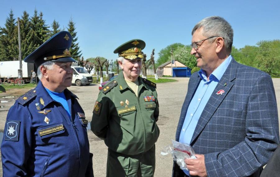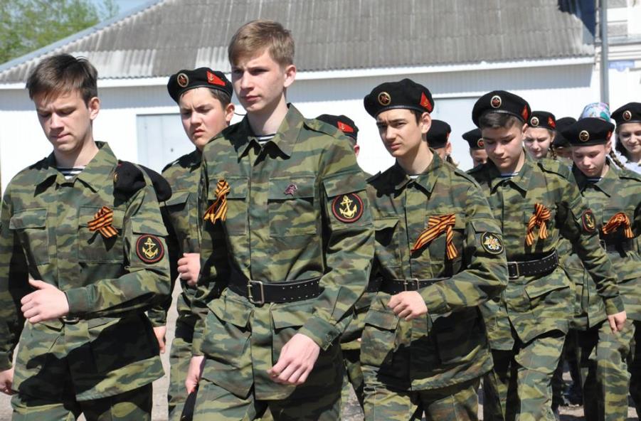 Смотр строя и песни проходил на школьном дворе, куда кадеты и гости направились после возложения цветов к памятнику односельчан, погибших в годы Великой Отечественной войны.