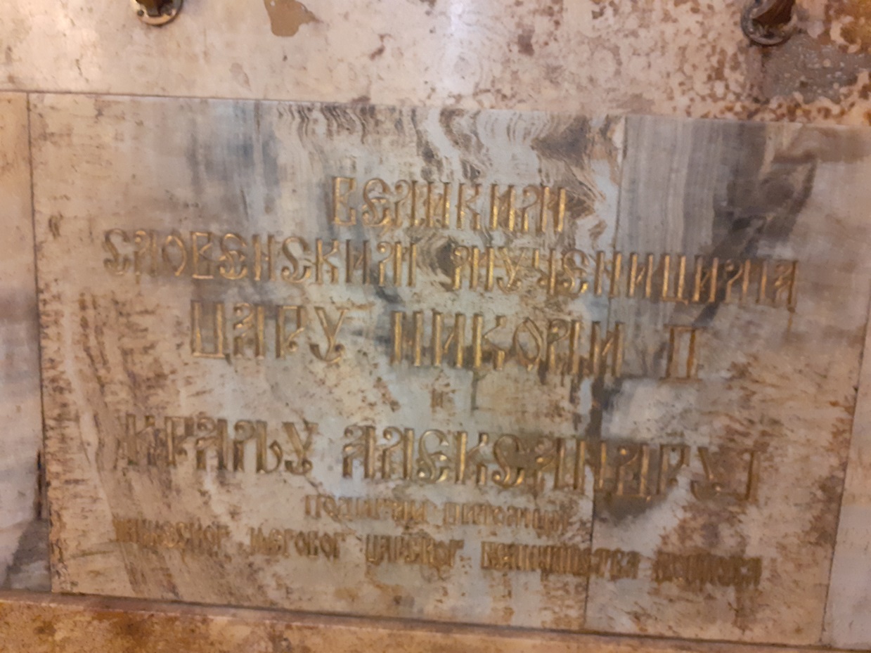 Мемориальная доска, посвященная великомученикам славянским Царю Николаю II Романову и королю Александру II Караджорджевичу