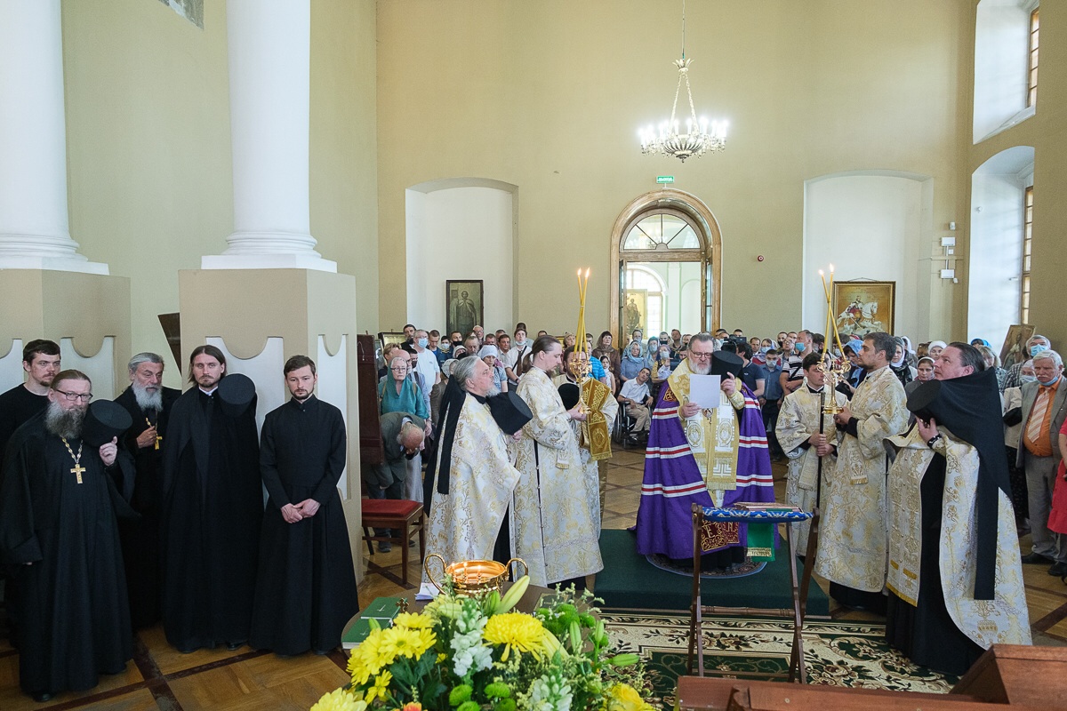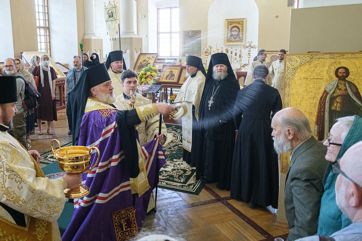 Владыка в сослужении архимандрита Никиты (Маркова), иеромонаха Прокопия (Павлова) и иеродиакона Илии (Васильева) отслужил молебен, за которым пел хор клириков обители, молилась братия монастыря.
