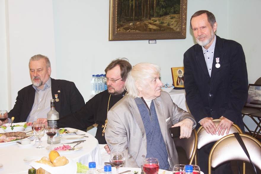 Г.Н. Фурсей на дружеской встрече. Слева направо: А.Д. Степанов, о. Александр Пелин, Г.Н. Фурсей, В.Е. Семёнов
