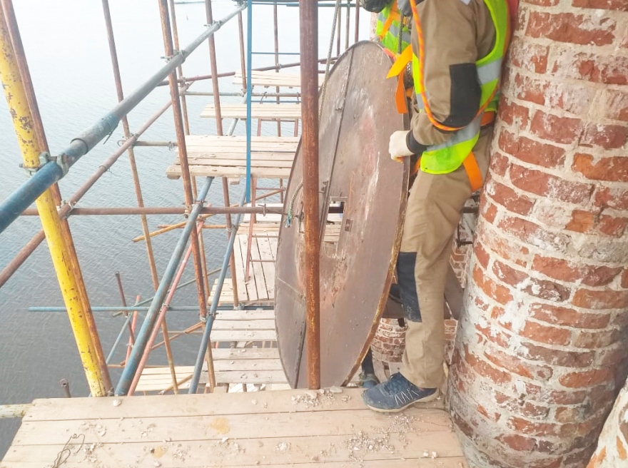 (Благодарим за уникальные фото работ по реставрации колокольни Александра Дмитриева, прораба ООО «Равелин»).