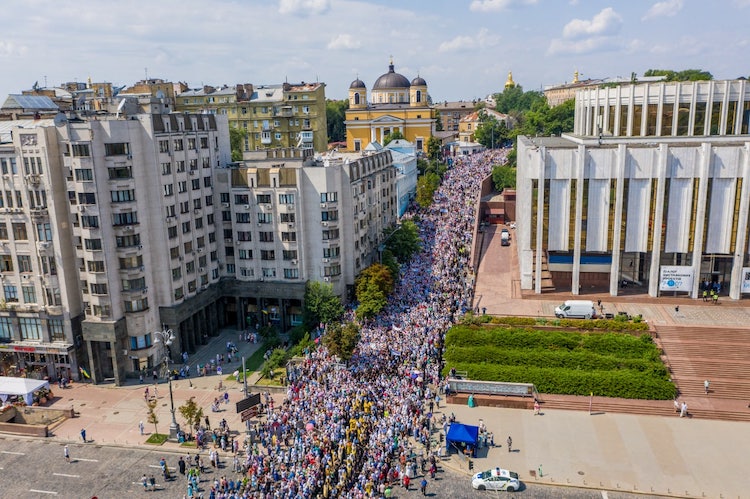 Многолюдное шествие направилось по центральным улицам Киева от Владимирской горки до Киево-Печерской Лавры, где будет совершено торжественное всенощное бдение.