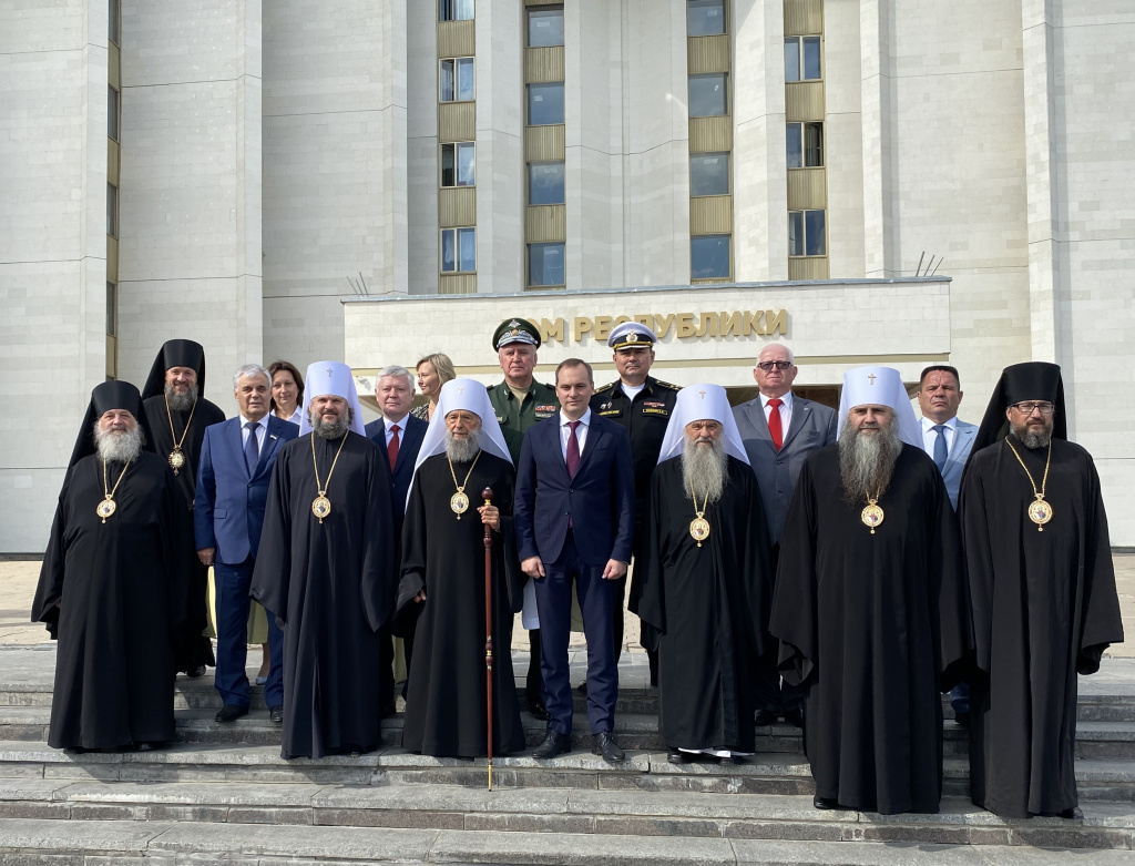 Его Высокопреосвященству сослужили митрополиты Нижегородский и Арзамасский Георгий, Тверской и Кашинский Амвросий, Саранский и Мордовский Зиновий, епископы Краснослободской и Темниковский Климент, Павлодарский и Экибастузский Варнава, Ардатовский и Атяшевский Вениамин, Выксунский и Павловский Варнава, а также секретарь Саранской епархии протоиерей Виктор Хохлов, игумен Силуан (Туманов), секретарь митрополита священник Павел Ермошкин, духовенство Мордовской митрополии.