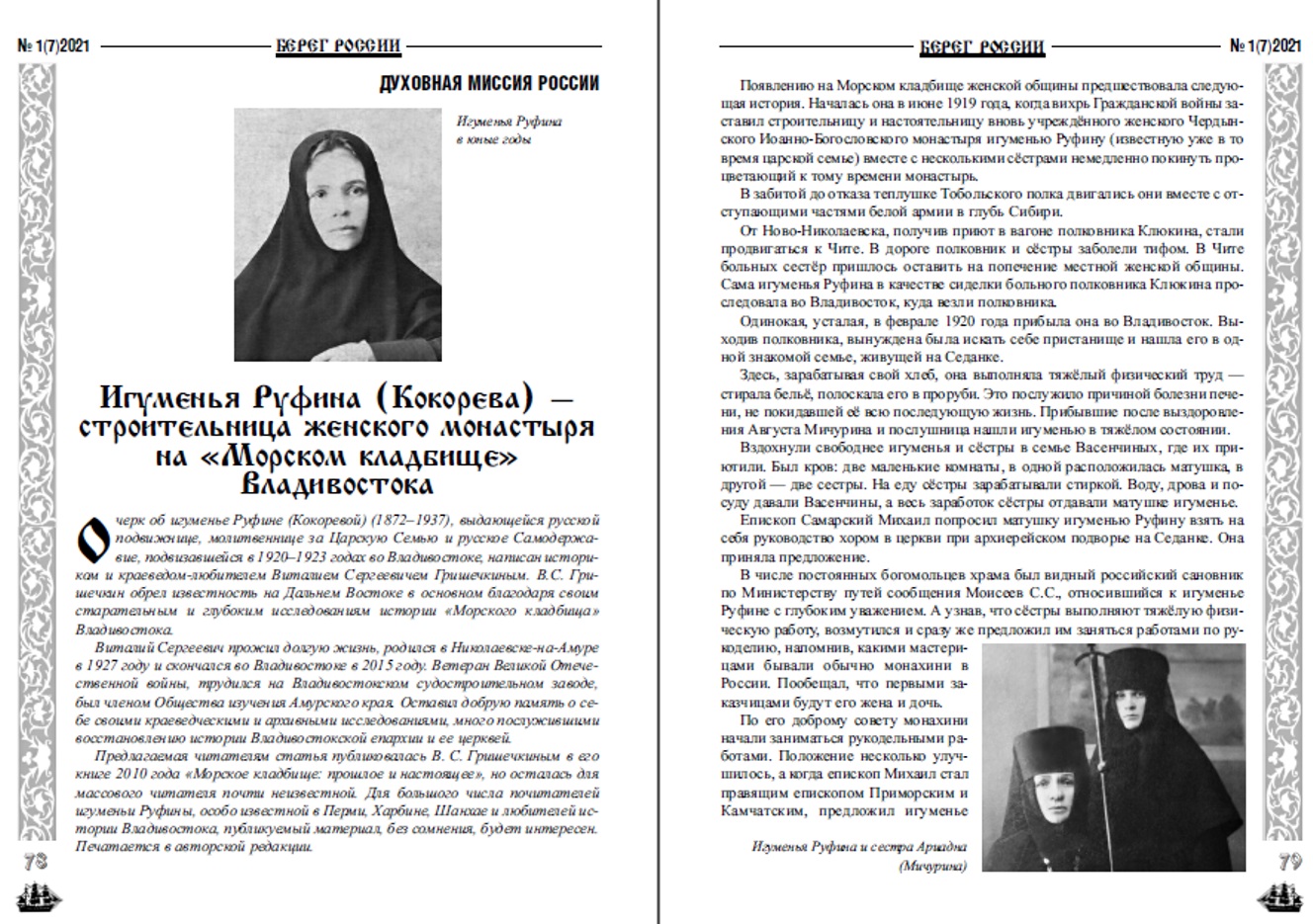 Вышел седьмой номер журнала «Берег России». Журнал издается с 2018 года, посвящен историческим и современным проблемам Церкви и государства.