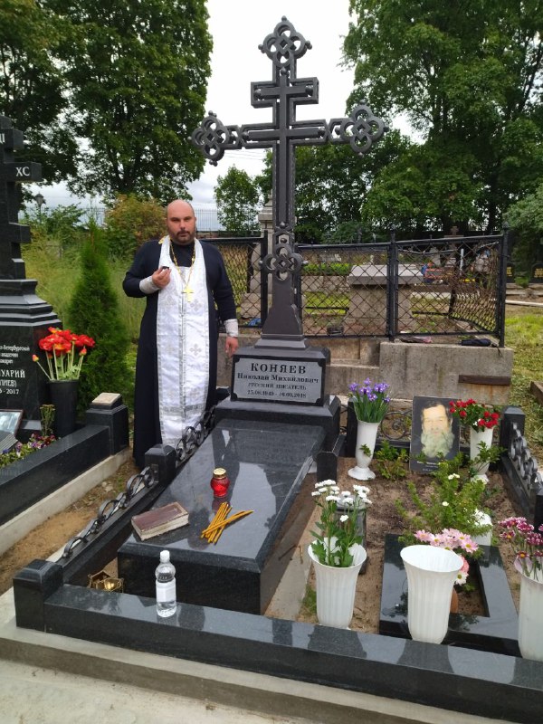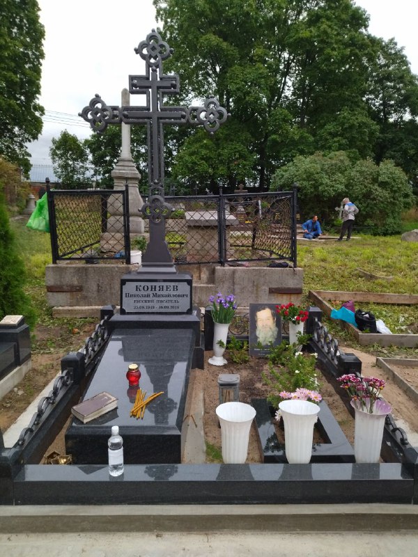 Напомним, Николай Коняев скончался 16 сентября 2018 года на 70-м году жизни. 19 сентября он был похоронен на Никольском кладбище Александро-Невской лавры. Могила Николая Михайловича находится справа от алтаря Никольского собора за мостиком. Рядом погребен ещё один друг и автор «Русской народной линии» епархиальный фотограф Юрий Петрович Костыгов.