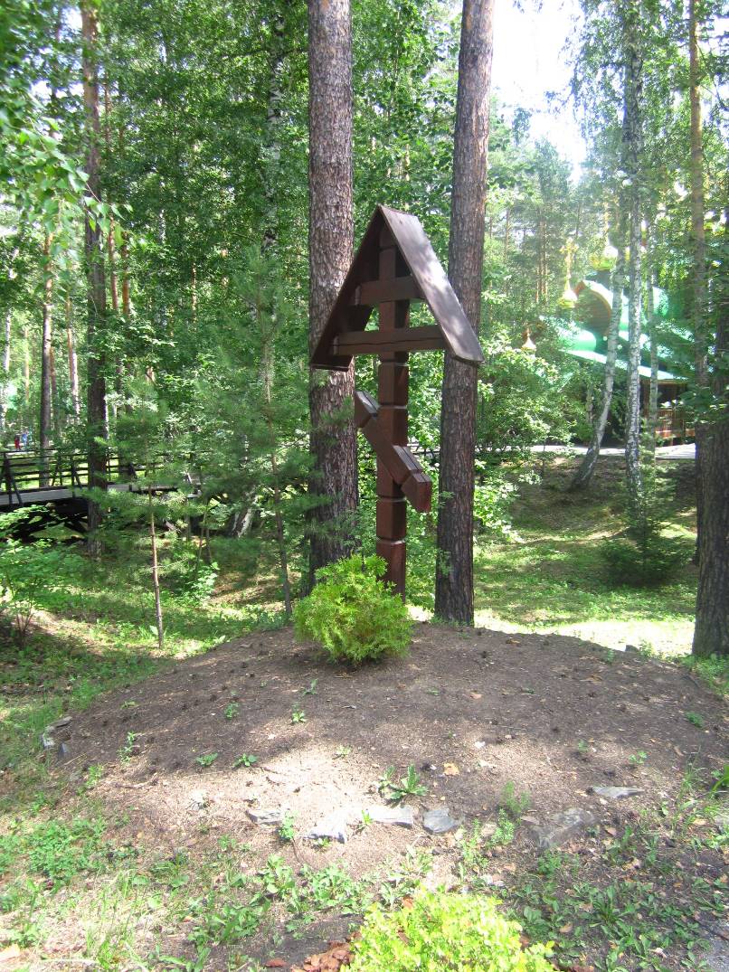 А на этой фотографии хорошо виден обзор непосредственно от открытой шахты до старой березы (слева от креста).