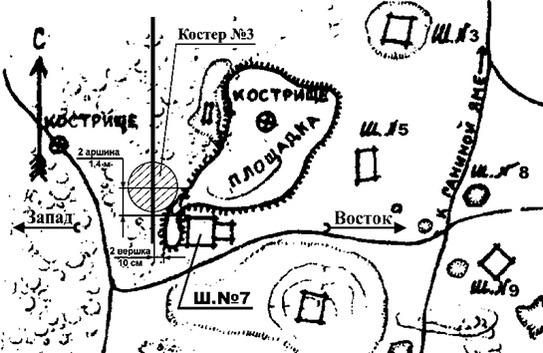 На карте М.К. Дитерихса, обработанной В.И. Корном, этот костер изображен в левом верхнем поле схемы.