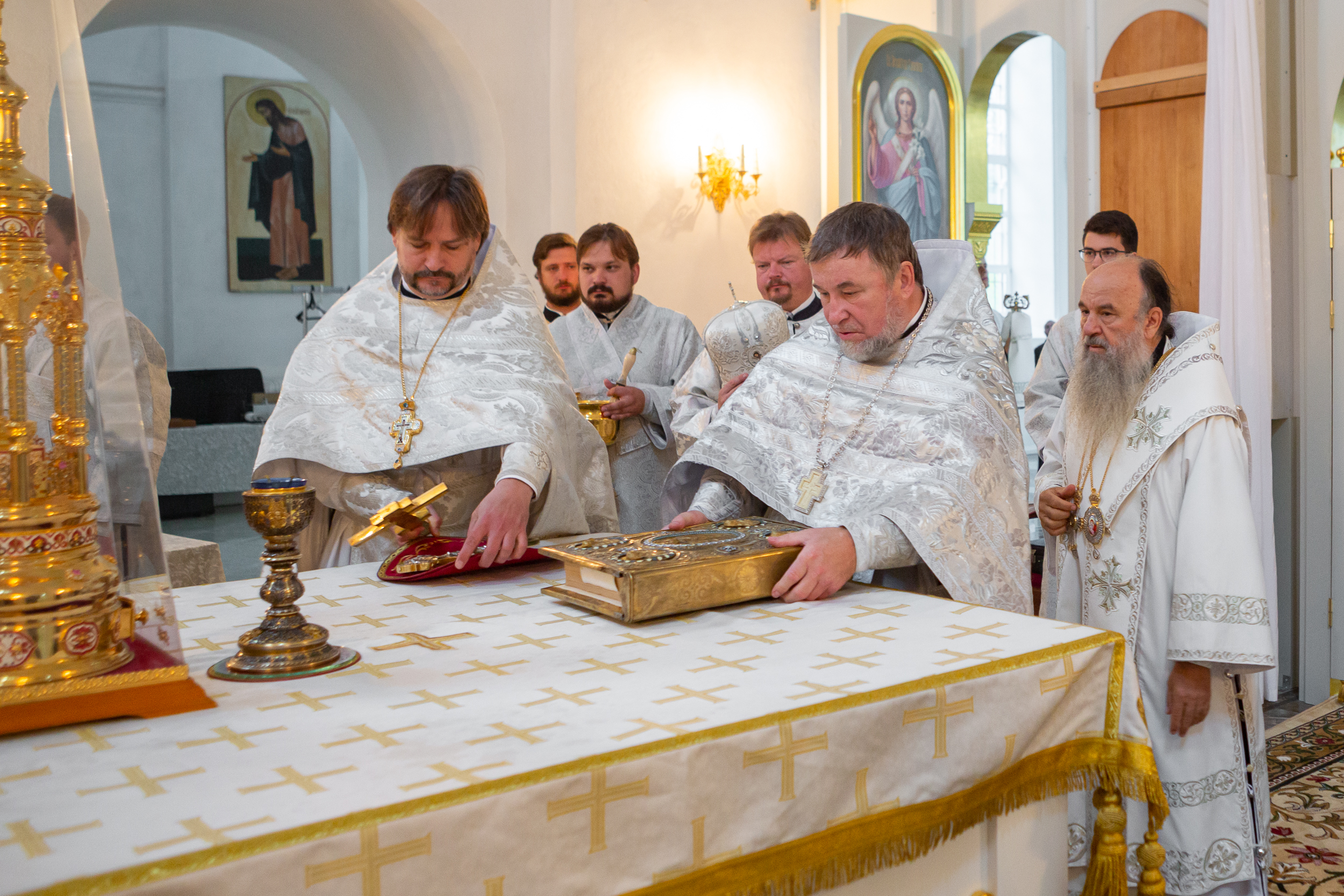 Великое освящение храма возглавил митрополит Санкт-Петербургский и Ладожский Варсонофий в сослужении настоятеля храма прот. Петра и сонма клириков Санкт-Петербургской митрополии. За богослужением молились паломники из Санкт-Петербурга и окрестных поселений – Сланцев и других населенных пунктов Ленинградской области. В соединении сердец духовенство и народ Божий коленопреклоненно молились о нисхождении благодати на Святой Престол, на весь храм. Особенный трепет вызвал у всех участников крестный ход во время освящения: священники в белых облачениях, люди со свечами в руках… Как будто Пасха! При этом звучало песнопение, которое поется во время таинства венчания, когда священник обводит жениха и невесту вокруг аналоя. Было ощущение, будто совершается венчание Неба и Земли, Церкви земной и Церкви Небесной!