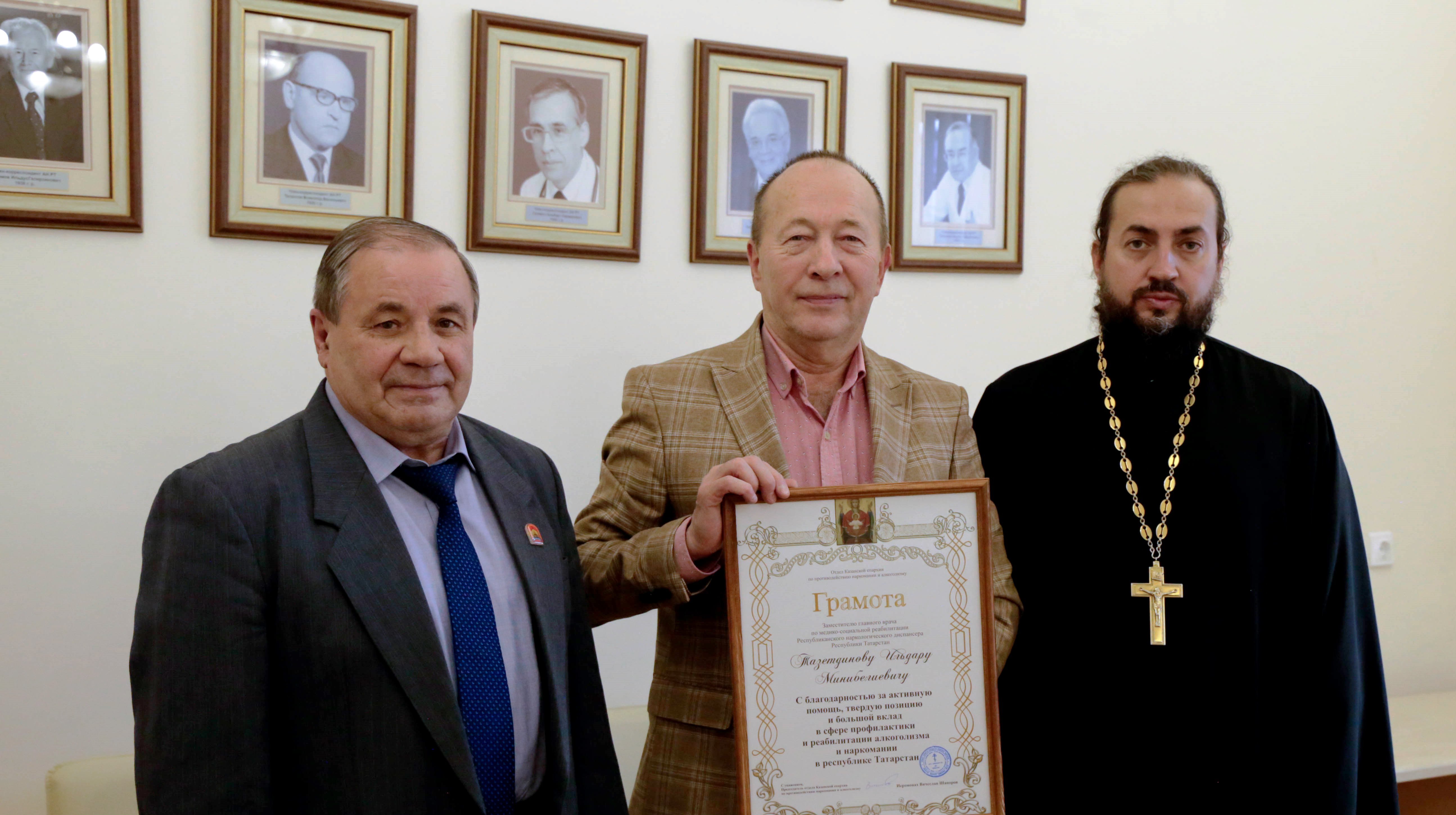 9 сентября 2021 года в КГМУ состоялся круглый стол «Трезвость и здоровье – основа развития социального потенциала общества, взаимодействие в решении проблемы», в котором приняли участие: председатель отдела Казанской епархии по противодействию наркомании и алкоголизму Иеромонах Вячеслав Шапоров; председатель Казанского епархиального общества «Трезвение», председатель рабочей группы по противодействию наркомании и алкоголизму при Общественной палате Республики Татарстан В.А. Юферов; представитель общественной организации «Общее дело» Р.К. Гатауллин, заместитель главного врача Республиканского наркологического диспансера И.В. Тазетдинов, заместитель начальника отдела управления по контролю за оборотом наркотиков МВД по РТ Е.А. Родайкина, заведующий кафедрой общей гигиены, проректор ФГБОУ ВО Казанский ГМУ Минздрава России А.В. Шулаев, профессор кафедры общей гигиены ФГБОУ ВО Казанский ГМУ Минздрава России О.Р. Радченко, ассистенты кафедры общей гигиены ФГБОУ ВО Казанский ГМУ Минздрава России П.В. Зиновьев, Н.И. Шарафутдинов и А.А. Шикалева, говорится в пресс-релизе, поступившем в редакцию РНЛ.