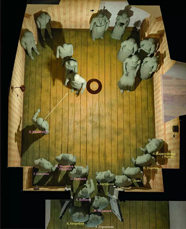Расположение узников и убийц в расстрельной комнате по воспоминаниям Я. М. Юровского и М. А. Медведева (Кудрина). 3D модель